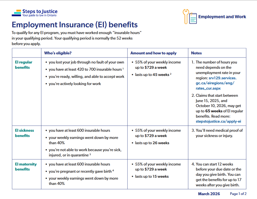 If you are not able to work because of illness, injury, or quarantine, you might qualify for up to 26 weeks of Employment Insurance (EI) sickness benefits.